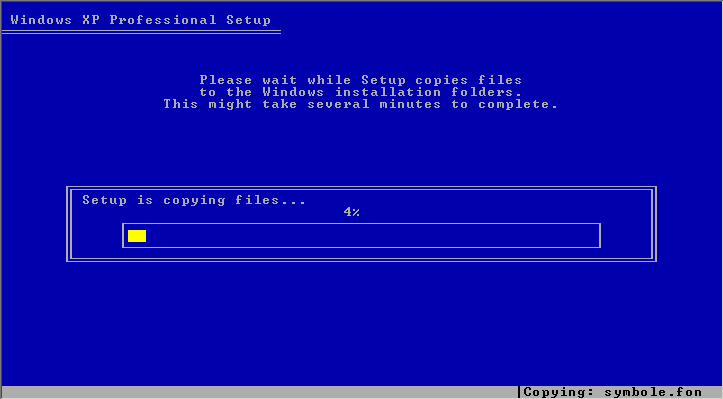 Daha sonra Setup is starting Windows mesajı ve Windows XP Professional Setup yada Windows XP Home Setup ekranı: