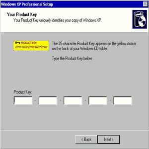 25 haneli Product key'i girin (Windows XP CD-ROM üzerinde-kutusunda yazıyor)
